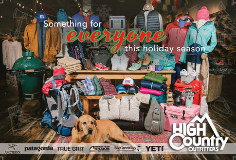 A selection of print ads, including direct mailers and newspaper ads, for Outdoor Sports Center of Wilton, CT, High Country Outfitters of Atlanta, GA, and Pull-A-Part LLC.